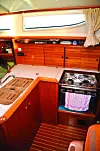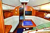 FAMILIE: Sun Odyssey 35 fungerer godt som turseiler. Det oppvippbare cockpitbordet henger i rattpidestallen.