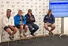 DEBRIEF: SailLogic anført av Thomas Nilsson (t.h.) hadde debriefer etter hver dags seiling. Fra venstre Daniel Slater i vinnerbåten i Sira-klassen, «Pandora», Terje Wang og Lars Ingeberg.