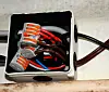 Med nytt strømopplegg om bord har jeg noen smarte «sukkerbiter» i koblingsboksen for interiørlysene. Her var det bare for med å klemme fast pluss og minus ledning, så var jobben gjort. Boksen får ikke konstant strøm som ville vært en fordel, men i og med at dette kun er en test, valgte jeg en enkle løsning. Med intern batteri, vil systemet ha strøm også når båtens strømanlegg ikke er på.