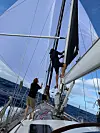 I tillegg til gennaker og Code zero ombord hadde vi, med god hjelp fra Henrik og Thomas hos Evolution Sails på Skøyen, fått sydd et hemmelig våpen: «Butterfly»-seilet. Det er enkelt forklart to romslige «genoaer» i tung spinnakerduk, sydd på torsjonsfri kabel på rull. Seilt spridd ut på to bommer kunne vi pushe ganske hardt.