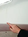 HULL: En ny mastekrage hadde vært bedre, men hull lar seg fikse med Tec7 som her påføres i gjennomsiktig utgave.