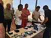 UTDELING: Deltagerne var samlet i Falmouth før start for å få utlevert pålagt sikkerhetsutstyr og opplæring.