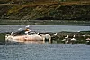 En strandet hval i Van Keulenfjorden er rene spisskamerset for isbjørn. Vi blir liggende på utsiden med båten og kikke. Foto: Audun Hetland.no