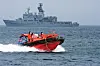 LEVERER VARENE: Den meteorologiske stasjonen på Bjørnøya får forsyningene med kystvakten. På land venter stasjonsmedlemmene på fersk mat og post. Foto Audun Hetland.no