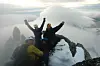 TØFF TOPPTUR: Etter 12 timers vanskelig og farlig klatring når Tor Henrik (fra venstre), Erik Rodesjø, Åshild, Ole Ivar og Audun endelig toppen. Men toppen er bare halvveis, det farligste, returen, gjenstår enda. Foto: Audun Hetland.no