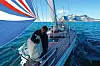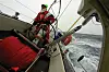 VARMERE VÆR: Et stort høytrykk gjør livet riktig behagelig, og Tor Henrik pakker vekk stormfokken. Foto: Audun Hetland.no