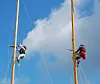 AVLYST: Signalflaggene fortalte VM-seilerne at dagens seilaser er avlyst på grunn av sterk vind.Foto: H. Nissen-Lie.