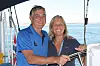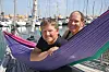 VOKSENTID: En stille time på badeplattformen for artikkelforfatter Guri G. Oppegård og Oddvar Sand. Det er bare timer siden de har overtatt båten.