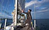 STORSEILSFALL: Storseilet heises lettest på masten, selv om fallet er ført akter til cockpiten.