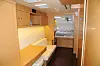 Det ene skroget er for eieren. Lugaren med tilhørende bad er større enn det man finner i hytter på land. Her er det også en benk og et stellebord.