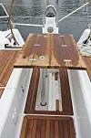 SMART 2: En smart «trekkspill-løsning» under babord køye i salongen gjør salongen enkelt om til en dobbelkøye.