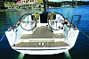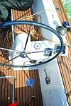 AKTERSKIPET: Akterspeilet felles ned til en badeplattform, men den blir liggende litt for høyt over vannet. Dufour 310 er den minste serieproduserte båten med doble ratt så langt.