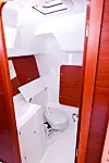 STOR BAD: Toalettbadet i Dufour 335 er stort. Du har tilgang til stuerommet under cockpitbenken fra toalettet.