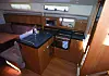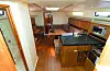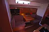 SALONG: Det mangler ikke plass under dekk i Hanse 415. Salongen er stor og med bordet slått helt ut, får du et skikkelig stort salongbord.