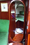 COCKPITEN: Med 1970-tallets smale akterskip blir ikke cockpiten større enn at det blir godt spenntak imellom benkene når båten krenger.