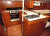 BRA PÅ SJØEN: Byssa er U-formet og gir god støtte for matlaging i sjøgang. Under vasken er det gjort klart for oppvaskmaskin.