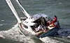 SELVSLÅER: Masten står på dekk. Alle liner er ført tilbake under dekk. Forseilet har selvslåer.