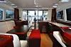 PARTYBÅT: Salong og cockpit er på samme plan. To glassdører skiller.