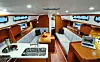 MODERNE: Xc 35 har en imponerende cockpit. To ratt er fint i en bred båt. X-Yachts har fall og liner på hyttedekk. Ikke så ryddig, men praktisk i bruk.