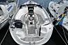 Hanse: Cockpiten er stor. Storseilskjøtet er festet på hyttetaket som standard. Det finnes ingen passasje til badeplatformen. Ratt var ekstrautstyr.