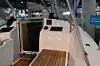Men båten leveres med rorkult som standard. Det er nok en løsning jeg ville valgt. Heldigvis er rorkulten flyttet langt akter, slik at den ikke tar opp hele plassen i cockpiten, slik rorkulten gjør på Hanse 315. Den utstilte båten har et bra cockpitbord. Dette får sannsynligvis ikke plass med rorkult.