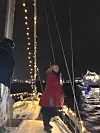 – Den første julen min i båt 2019 – den gang i seilbåt, og da kjente jeg ingen her, men jeg hadde familien her hjemme i byen, og jeg har alltid blitt invitert til min søster med mye familie på julaften. Jeg feirer derfor julaften på land, og har som tradisjon å synge med familien på land på julaften. Det var under pandemien at vi, mine søstre, sviger og tantebarn, begynte tradisjonen med å underholde nabolaget. Vi synger og leser juleevangeliet.