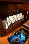 Komfyren er plassert på tvers av skipsretningen. Det gjør at den trenger plass rundt seg for å kunne kantes når båten krenger. – Slik komfyren er plassert vil jeg ikke brenne meg om det skulle skvalpe over under matlaging i sjøen forteller Joke Zwart.