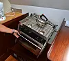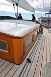 Båten har en motor på kun 75 hk, ingen generator. Den har heller ikke watermaker eller oppvaskmaskin. Prioriteringen har vært seilegenskaper, så vektbesparelse har vært viktig.