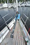 – 56 fot er alt for stort for to, men vannlinjelengden er en fordel på havet. Vi har derfor kun utnyttet deler av skroget, og sentrert vekten i midten, forteller Joke Zwart til Seilas under omvisning.