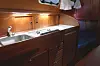 27-foteren veier bare 2,5 tonn, og er smal nok for transport på vei. Maksbredden er på 2,55 meter. Det er heller ikke full ståhøye under dekk. Båten leveres med to innredningsløsninger. En mer konvensjonell planløsning med to lange benker i salongen og byssa ved nedgangen, eller med dinett, som vist på utstillingen. Da blir byssa langsgående, og større. Begge versjoner har ett lite bad akter.