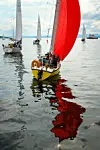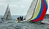 Noen prøvde seg også med spinnaker. Det gikk stort sett bedre innenfor Nakkholmen, enn utenfor. Vinden kom kraftigere ut fra Bunnejorden, og mange båter slet med å få seilet ned og tapte mye.