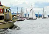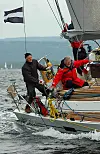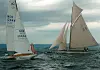 Store bildet: Vinneren av klassen for klassiske treseilere «Triton» ut fra start.