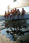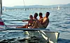 De heldigste hadde vind frem til Slemmestad, men mange kom ikke lengre enn til Gåsøya før vinden forsvant helt. Da kom de ikke lengre den dagen. Mens noen «proffer» alt hadde brutt ved Slemmestad så den bakre tropp til å sette pris på forholdene. Noen la seg med fendre inntill hverandra, andre åpnet en vinflaske. Det var fisking, bading eller lesing.