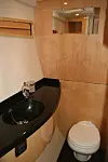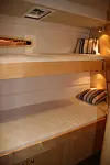 Den utstilte båten har senkekjøl og tre kabiner, hvorav eierkabinen er plassert akterut. Aktenfor forpiggen på styrbord side er en mannskapskabin med to køyesenger.
