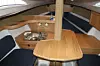 Vi seilte med storseil og fokk. Vinden var ujevn, men vi logget fire-fem knop på skarp slør, og nesten det samme på kryss. Det virker generelt som båten holder god fart på kryssen inntil nærmere 30 prosent vinkel, og den skyter raskt fart ved selv små vindkast. Seilhåndteringen er ikke tyngre enn at jeg som kvinner trekker inn fokkeskjøtene uten det minste behov for å bruke vinsjene. Båten styres ved hjelp av ror og rorkultforlenger, samtidig som man har fokke/genuaskjøtet og storseilskjøtet inenn rekkevidde. Påhengsmotoren på åtte hester trekkes opp ved hjelp av tau og evnetuelt vinsj ved behov.