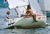 WITCHIE: Med minitonneren «Witchie» ble Christen With, Audun Goksøyr og Erik Otterstad verdensmestre i 1986. Båten er tegnet av Eivind Amble, og trioen hadde bygd den selv.