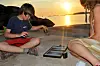 Vi lå på nordsiden av bukta hvor solen gikk først. Vi tok derfor med backgammon-spillet på berget og hygget oss helt til solen forsvant ned i havet i vest.