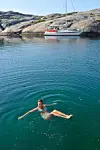 Magne Klann har laget en flott havneguide som dekker kysten fra Grebbestad i Sverige til Svenner i Norge. Under het sommersol i forrige uke ønsket vi å ligge i en uthavn hvor vi kunne bade og ligge trygt, uten å seile unødige omveier.