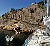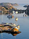 Rett utenfor Fjällbacka ligger det fantastiske muligheter for å legge båten bak idylliske Svaberg. Merk deg Fläsköen.