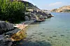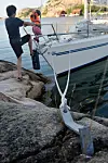Vi valgte å ligge på innsiden av Fläsköen. Her lå vi sammen med kun en annen båt med baugen til berget. Rett ved stedet vi lå var det en lekker sandstrand uten et menneske eller båt.