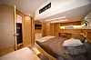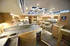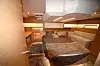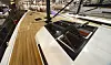 Du kan arrangere et bryllup om bord på denne båten. Cockpiten består av to L-formete benker med hvert sitt bord. Det gir en bedre passasje. Bak, mellom rattene, er det også en sittegruppe, eller en stor solseng, avhengig om hvordan putene legges. Under benken er det en utendørsbysse.