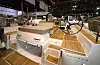 En targabøyle får storseilskjøte ut av veien. Bøylen er bygget i karbon. Båten kan også leveres med et fast biminitak, en trend som er tydelig på båtmessen.