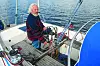 Ragnar Kvam ombord i båten han har seilt jorden rundt med.