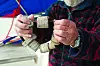 40 MM: Ragnar viser frem det 40 mm tjukke skrog-laminatet.