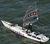 En oppblåsbar bag i akterskipet kan aktiveres ved kullseiling og gjør at brettet kan rettes opp også når Le Gouvello befinner seg under dekk. Brettet seiles ellers som et vanlig seilbrett med sele som hjelper henne å holde riggen på plass. Det eneste ekstrautstyret er en line fra selen som et fastgjort til seilbrettet. Selv om brettet kan seile 45 grader mot vinden, vil den normale vindretning på turen til Reunion tilsi rom slør med vinden mellom 90 og 150 grader.