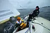 KRENGNING: IF-en krenger til et visst punkt. Kjølvekten forhindrer at den krenger mer. Terje Johannesen og Per Erik Ristvedt har kontroll.