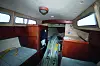 UNDER DEKK: Innredningen er enkel, men egnet for tur- og weekend-seiling. I regattaer er det seil som okkuperer interiøret.