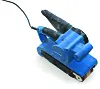 MASKIN: Båndsliper ble forsøkt uten hell. Bunnstoffet fester seg i sandpapiret meget kjapt, så effekten blir minimal.