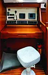 SIDEVEIS: Kartbordet er plassert slik at navigatøren sitter med ryggen til resten av båten.
