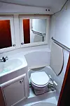 BAD: Toalettet er plassert forut med dør fra forpigg og salong.